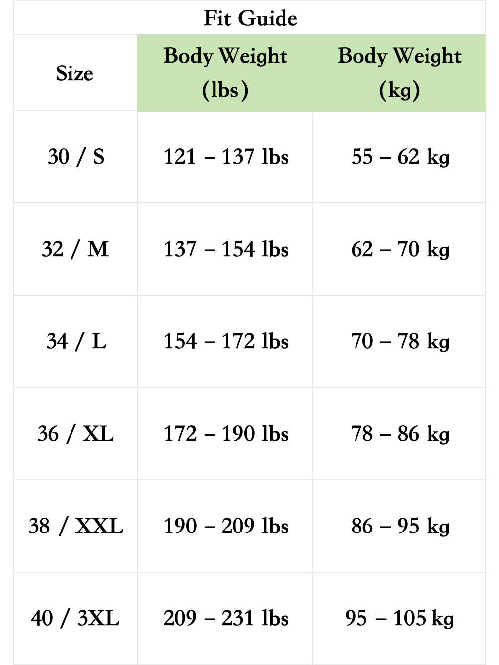 | XXL |